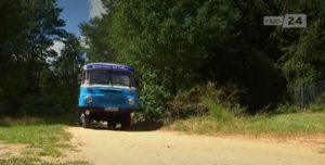 Robur-Bus des RBB berichtet über den geplanten Funkmastbau in Petersdorf (31.07.)